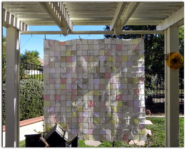 And a view from the back, so you can see some of our California sunshine. Next, I'll be piecing the quilt back.